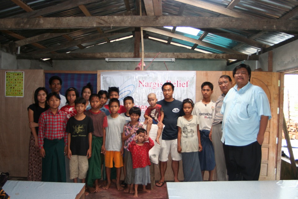 写真はミャンマーにて。ナルギス台風被害後の困難な状況でも笑顔を失わずに、元気ている児童支援施設の子供とスタッフたち。ピンチでも希望を失わないところが印象的でした。
