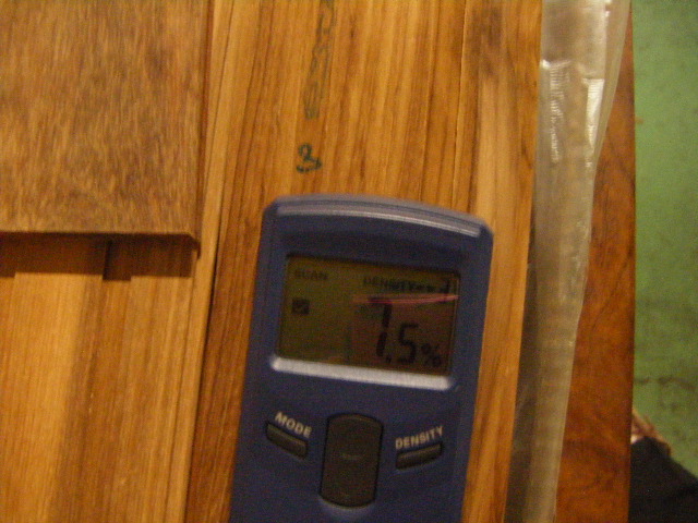 チーク特有の油分の詰まった材です。厚・幅・長さ問題なく、含水率も7.5%でクリア!