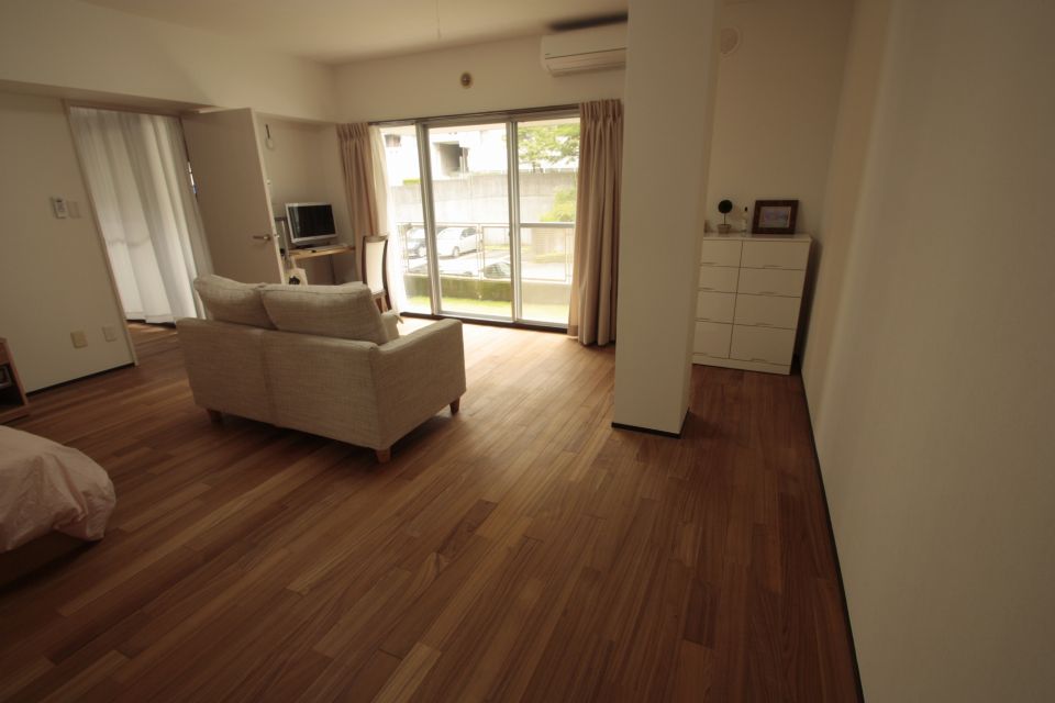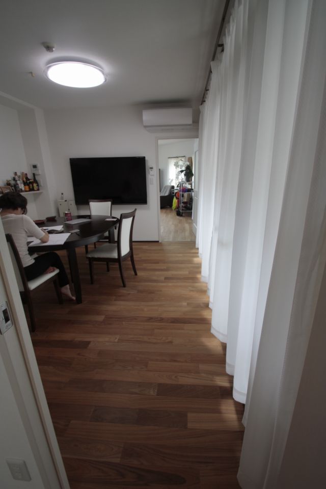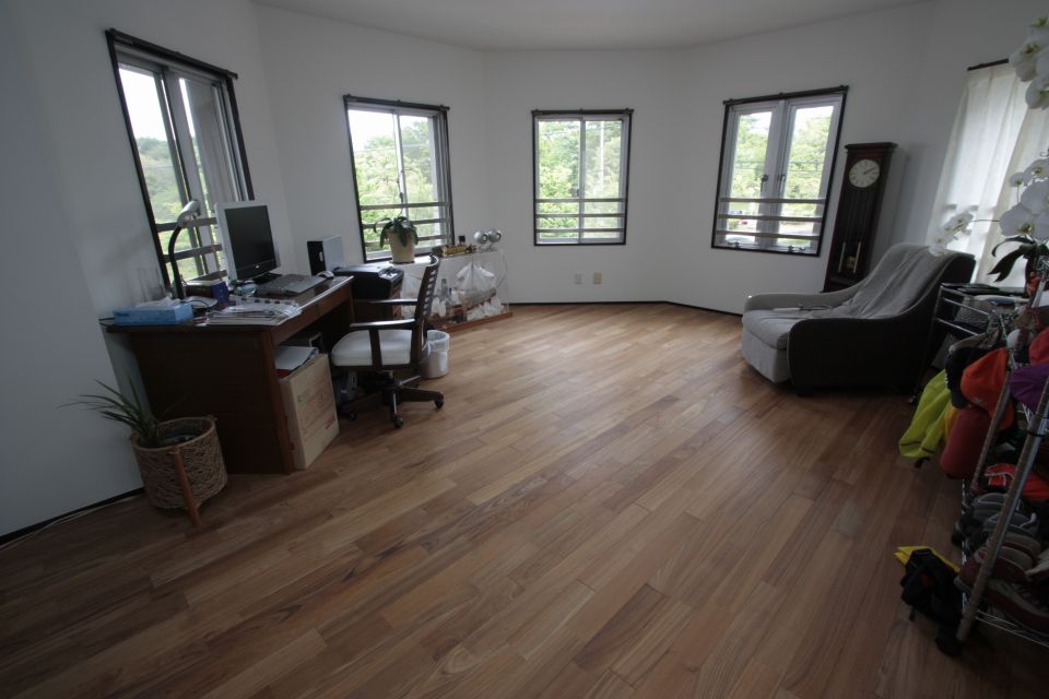 I様曰く、チークフローリングは肌触りが格別で、とくにお風呂上りに素足で歩くとサラサラとしていて気持ちがよいとのことです。丁度、物置となっている1室は既存の合板フローリングのままだったので、踏み心地が断然違うことが良く分かったとのことです。