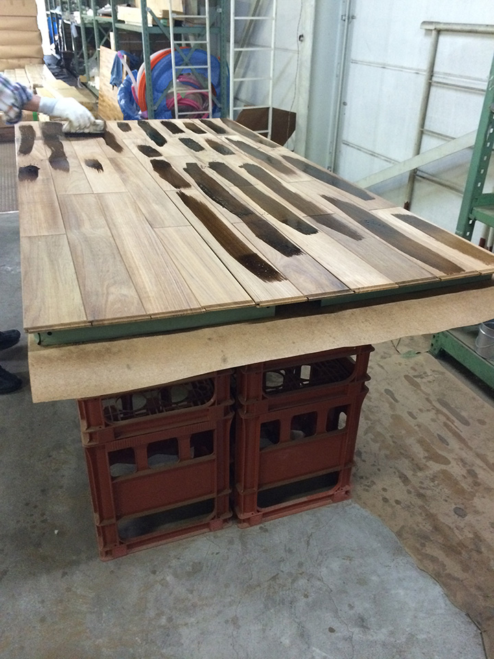 浸透するオイル塗料に染料が入っております。今回はダークウォールナット色。