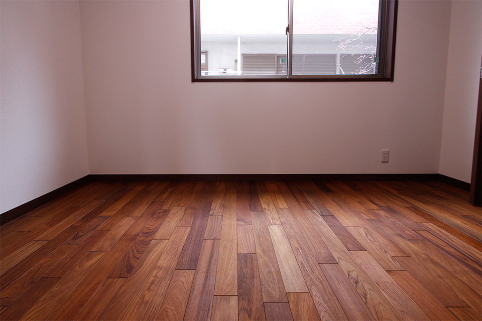 時間が経ったチーク材は本当に美しい色合いを醸し出します。チークフローリングには、時間の経過を楽しめる要素があります。