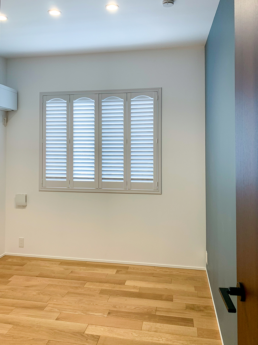 弊社ではチーク、アジアンウォールナットに続く第3番目の取り扱い樹種になります。オフホワイトで明るい空間作りに向いている樹種です。節無しAグレードと節埋めのCグレードの2つのグレードを用意しております。下の施工事例はWOR-120Aという商品(節無しAグレード)です。グレージュのアクセントカラー壁紙との相性も◎。