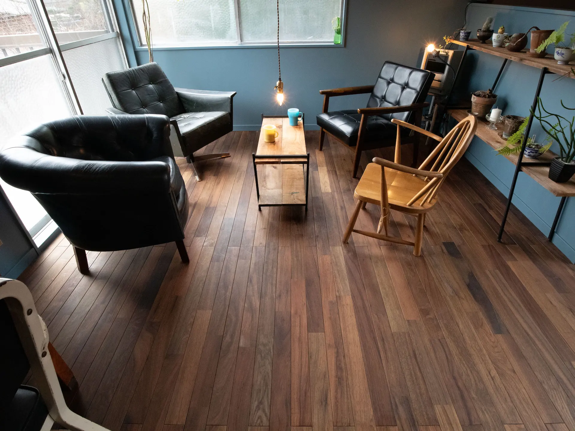アジアンウォールナットは非常に硬く、摩耗や傷に強いため、フローリングや家具に適しています。特に、日常的に使用する空間においても長持ちします。