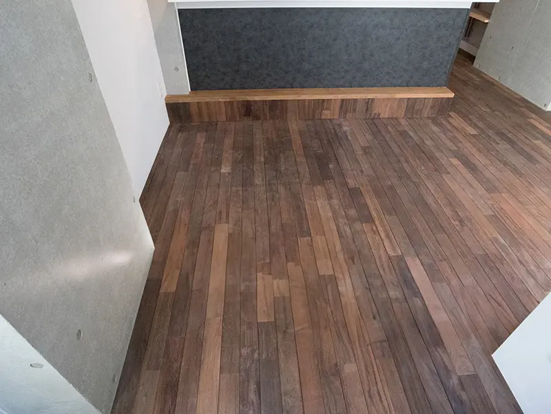高い耐久性と美しい外観を活かし、住宅や商業施設のフローリング材として人気です。ユニ材や乱尺材を使用することで、様々なデザインに対応できます。